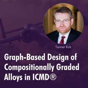Compositionally graded alloys offer promising trade-offs in properties, like mechanical performance and environmental resistance, for materials-limited industries. In this webinar, Dr. Tanner Kirk will review recent additions to QuesTek’s ICMD® software platform to support the design of these gradient materials. A new composition mode, Composition Graph, enables users to construct a connected grid of compositions with axes defined as pure elements or pre-alloyed mixtures. With the new Graph Search sampling method, users can define constraints or objectives from the outputs of any model on ICMD® and design gradients that avoid manufacturability issues and meet performance requirements.
